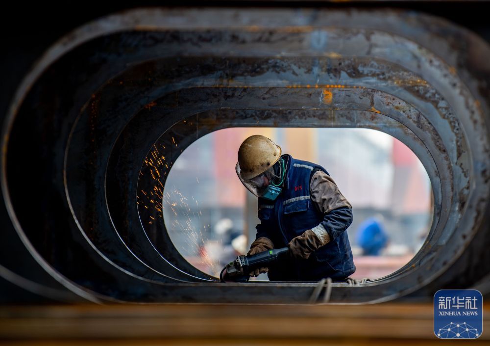 ^ 1月5日,工人们在江苏泰州港航运有限公司工厂进行打磨工作。新华社发(杨玉刚摄)